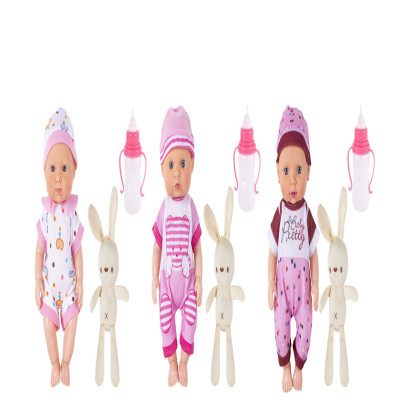 دمية بيبي لطيفة مزوّدة بإكسسوارات متنوعة تشمل رضاعة ولعبة أرنب،